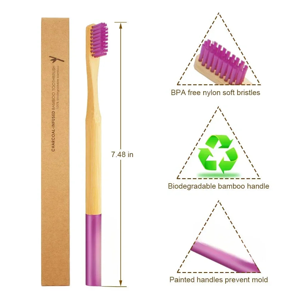 6-Pack Biodegradable Bamboo Toothbrushes – Travel-Friendly & Gentle on Gums